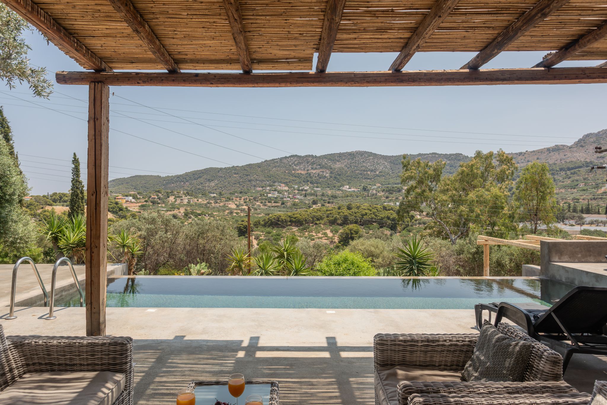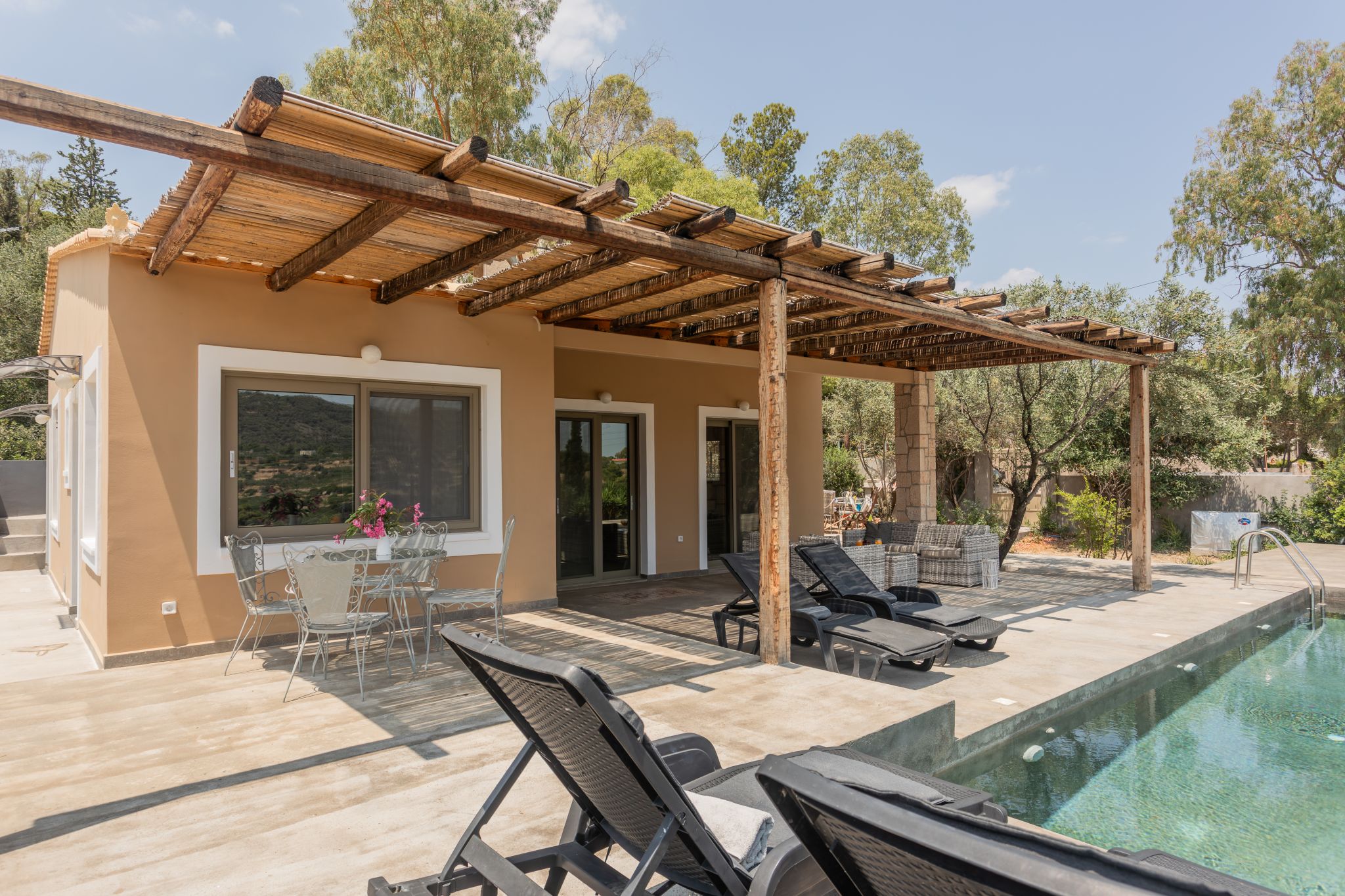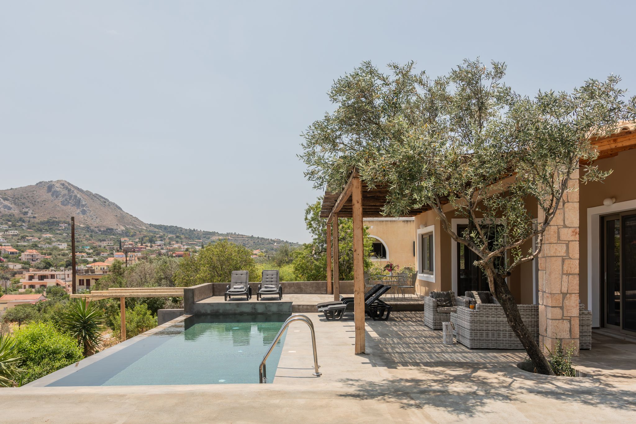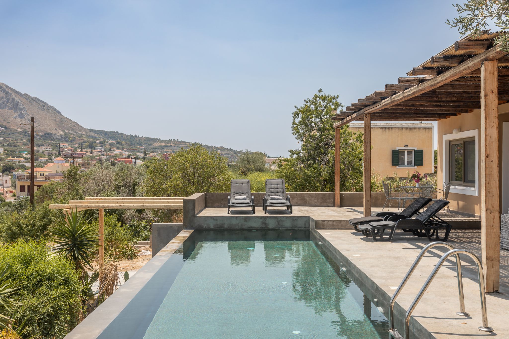 Complemented by the wild greens growing around it, this cosy hillside house is the very definition of tranquility, offering calming mountain views from the charming pool area.