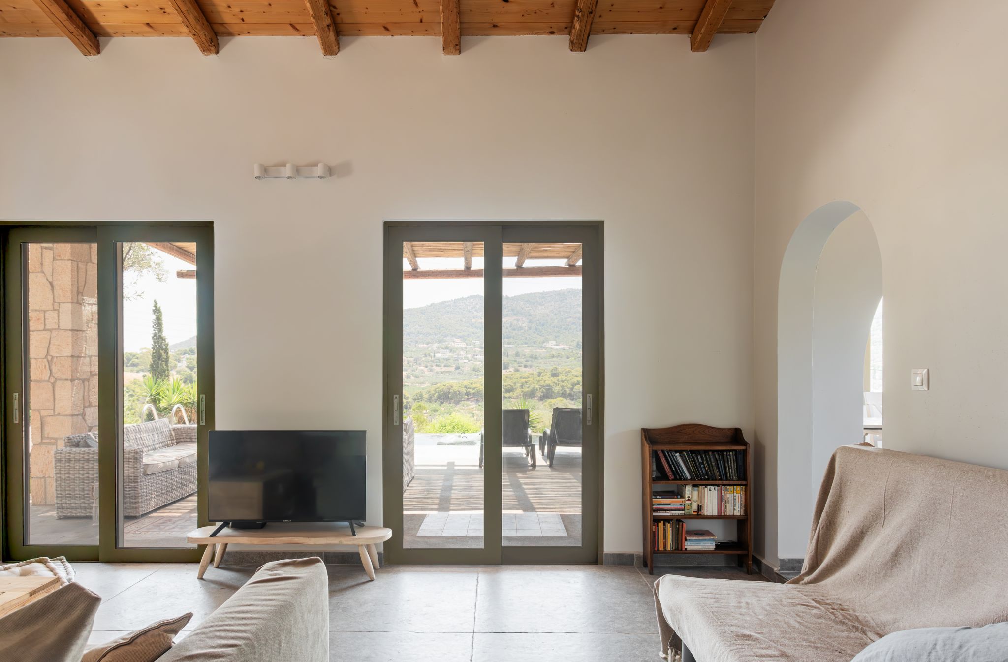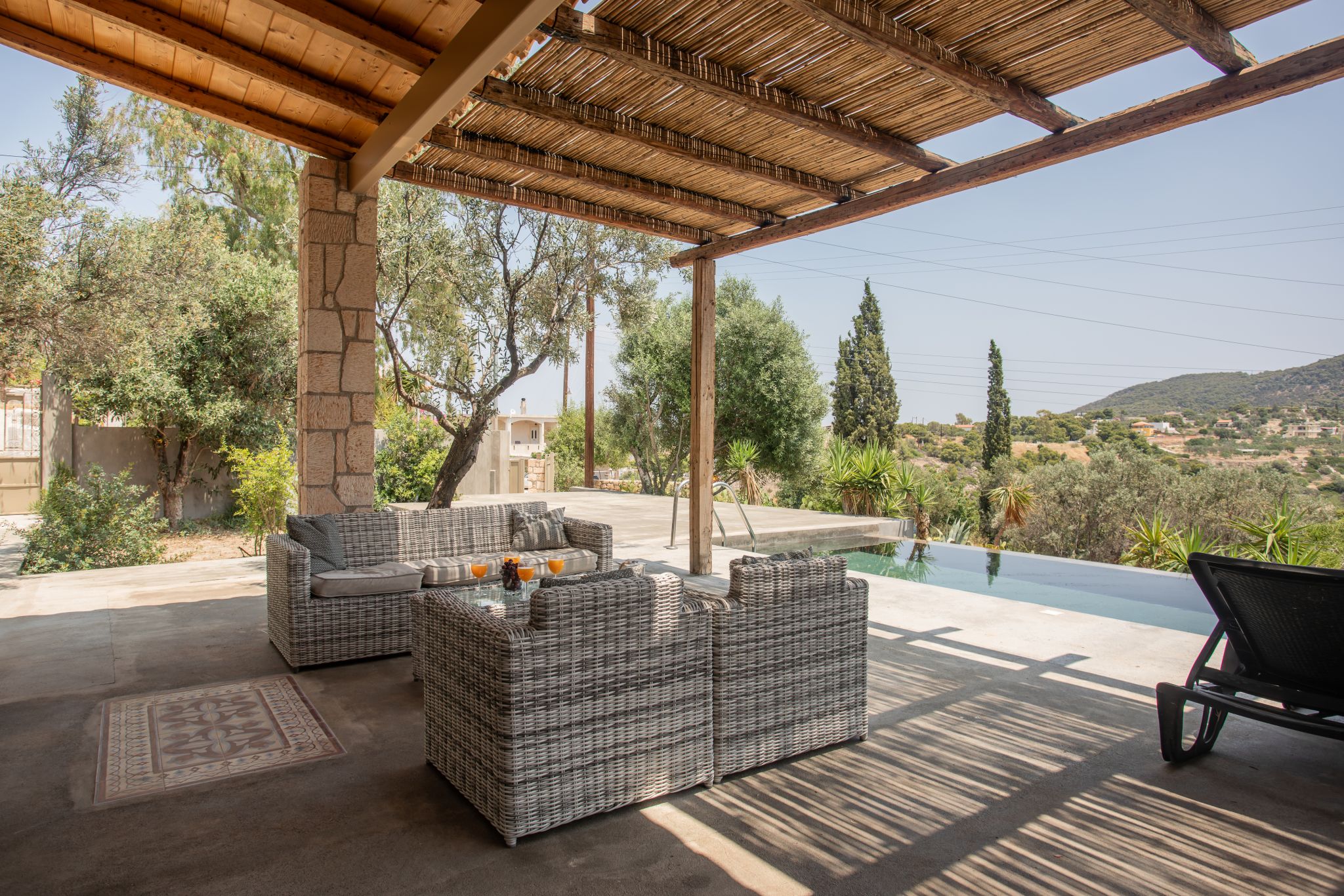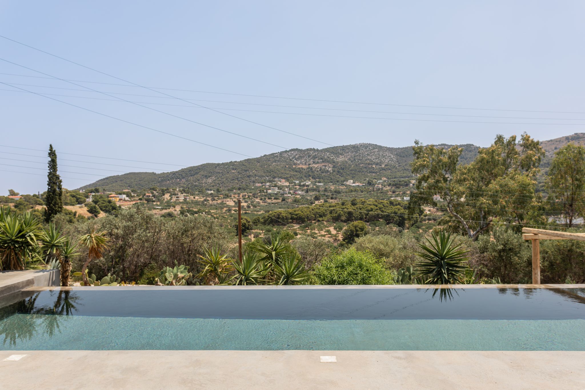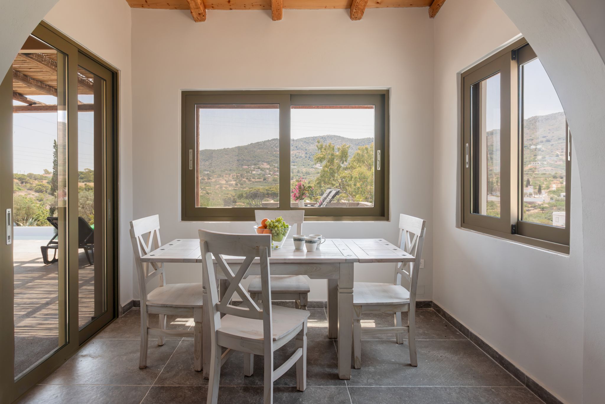 Complemented by the wild greens growing around it, this cosy hillside house is the very definition of tranquility, offering calming mountain views from the charming pool area.