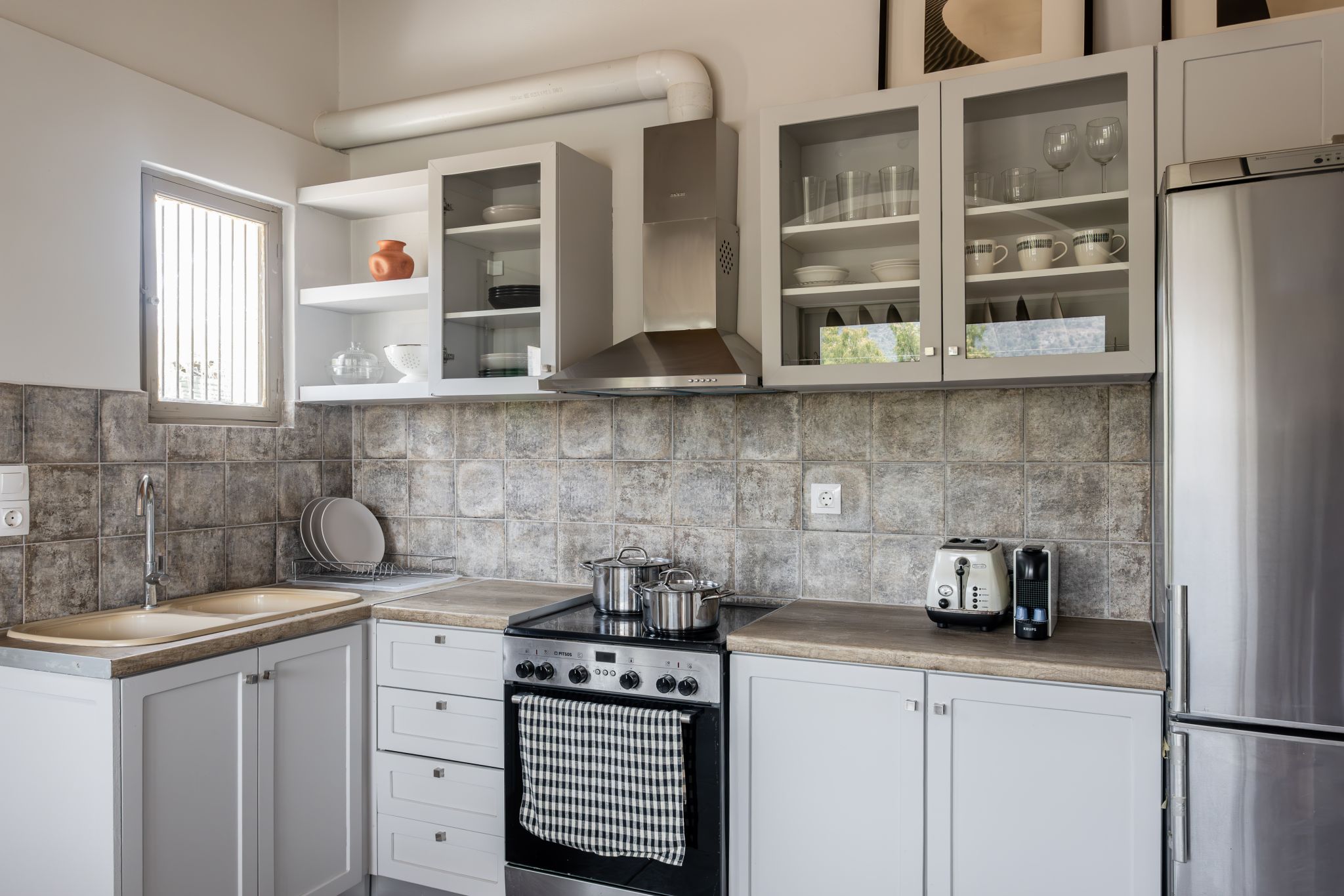 The house mixes rustic charm with modern aesthetics to create a relaxing atmosphere for a getaway. Located on its own plot, the one-level house has 2 bedrooms that can comfortably host up to 4 guests (plus one on a sofa-bed).
